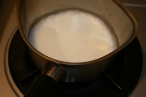 鍋はミルクパン(牛乳をガス台で温めるための小さな鍋)がちょうどよい大きさです。