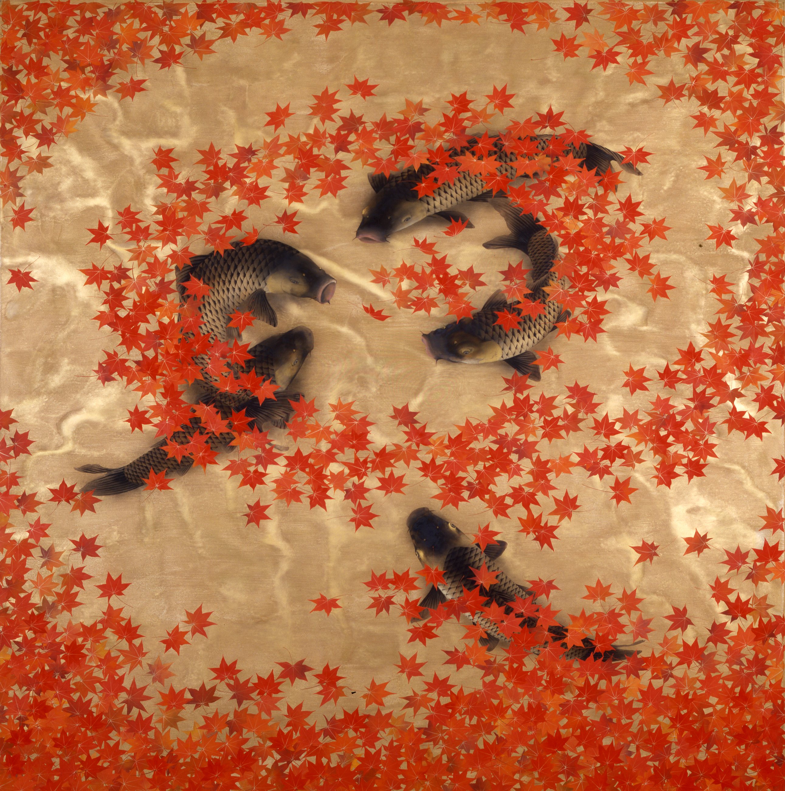 日本の四季を描くことにこだわった牧の鯉は、師匠川端龍子譲りの画風で康成の目に留まったのでしょう。