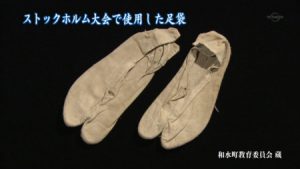 予選会での失敗から足袋に改良を施し、裏地にゴムを貼付けた特製の「マラソン足袋」で出場したのですが、日本とは違う石畳のコースに加え、北欧とは言え40度を超える猛暑に体力を奪われ、日射病にかかり意識を失ってコース上に倒れ込んでしまったのでした。